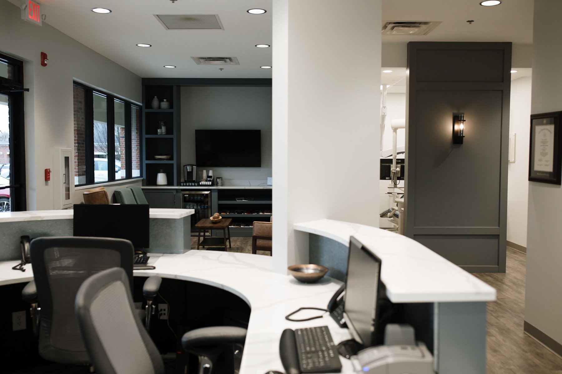 The newly designed lobby and reception area feature custom millwork, durable flooring, and soft, neutral colors chosen to balance professionalism with comfort. Natural light and thoughtful lighting upgrades help set the tone for a calm patient experience while improving day-to-day usability for staff.